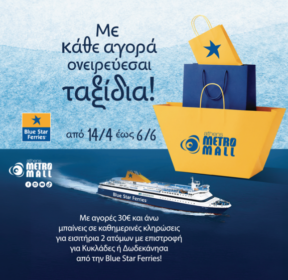 Το Athens Metro Mall φροντίζει, με κάθε αγορά… να ονειρεύεσαι ταξίδια με Blue Star Ferries!