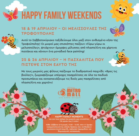 Αυτό το Σαββατοκύριακο ταξιδεύουμε όλοι μαζί στον ανθισμένο κήπο της Τροφούπολης! Οι μικροί μας επισκέπτες παίζουν «Γύρω-γύρω οι μελισσούλες», φτιάχνουν όμορφες μέλισσες από πλαστελίνη και χάρτινα πιατάκια και κάνουν ένα μοναδικό face painting!