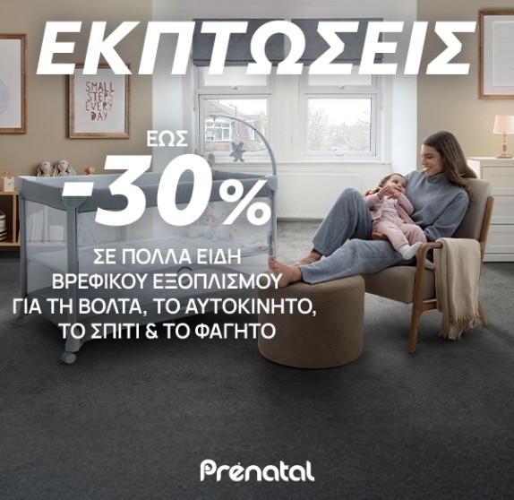 από 16.01 έως 28.02Εκπτώσεις Prénatal: Βρεφικός Εξοπλισμός έως -30%!