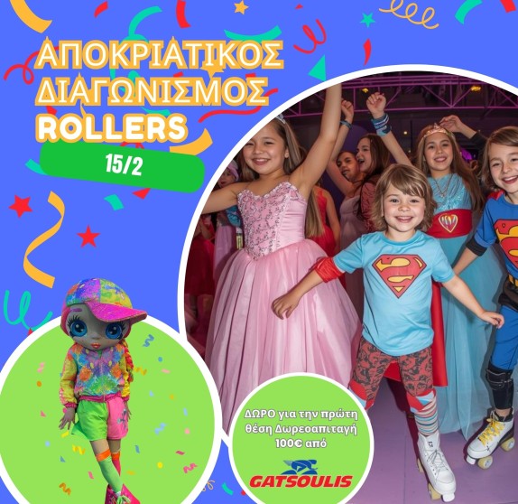 από 06.02 έως 15.02Αποκριάτικο Party και διαγωνισμός σε Rollers με υπέροχα δώρα την Κυριακή 15/2, 16:00–20:00!