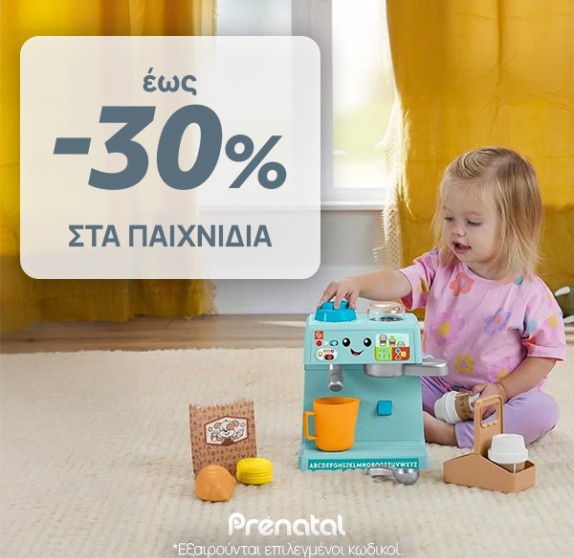 από 02.04 έως 30.04Spring Offer Prénatal: έως -30% στα παιχνίδια! Διάλεξε τα πασχαλινά δώρα σου και γέμισε κάθε στιγμή σας με φαντασία και περιπέτειες! Παιχνίδια βρεφικά, εκπαιδευτικά, επιτραπέζια, με ήρωες, με κατασκευές που βοηθούν την ανάπτυξη του παιδιού!